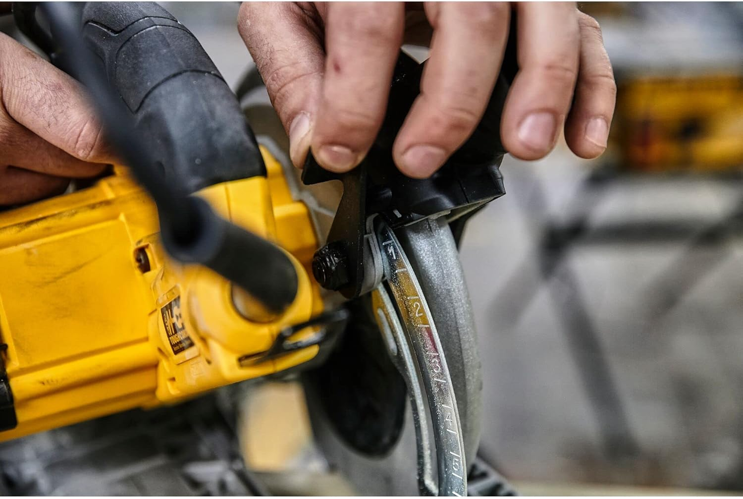 DEWALT Handkreissäge (1,350 Watt, 61 mm Schnitttiefe, Sägeblatt-Ø 190/30 mm, inkl. Schutzhauben-Aufsatz für die Staubabsaugung, Parallelanschlag, Montagewerkzeug und Koffer) DWE576K