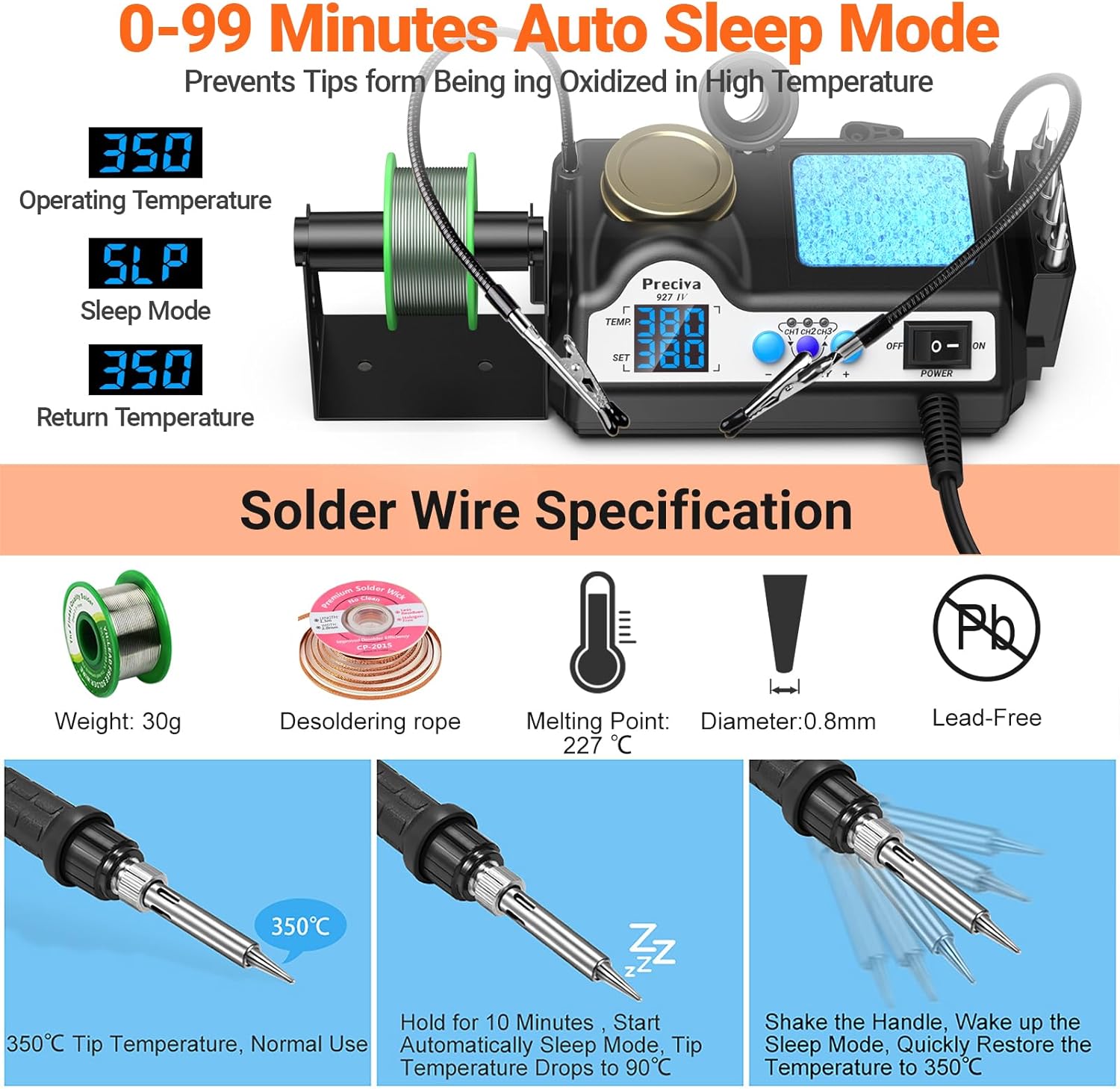 - 【Effizienter Lötkolben】-- 130W Lötstation, schnelle Heizung Keramikkern, kann 300℃ in 15 Sekunden erreichen. Vier Kühlöffnungen sorgen für eine schnelle Wärmeableitung. Mit dem schnellen Heiz- und Kühlsystem kann die Preciva 927IV Lötstation Ihnen helfen, die Arbeit effizient zu erledigen.