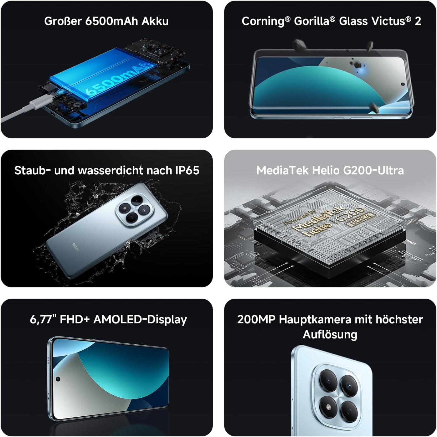 - 【Riesiger 6500 mAh Akku (typ.) mit 45W Turbo-Laden】Dank modernster Silizium-Kohlenstoff-Technologie bietet das REDMI Note 15 Pro eine deutlich erhöhte Akkukapazität – für eine außergewöhnlich lange Akkulaufzeit und sorgenfreie Nutzung den ganzen Tag.