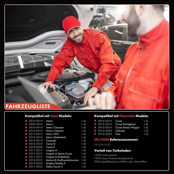 Frankberg Turbolader Abgasturbolader Kompatibel mit Cruze J300 1.4L 2010-2016 Orlando J309 1.4L 2012-Heute Astra J P10 1.4L 2009-2015 Corsa D S07 Mokka X J13 Replace# 55565353