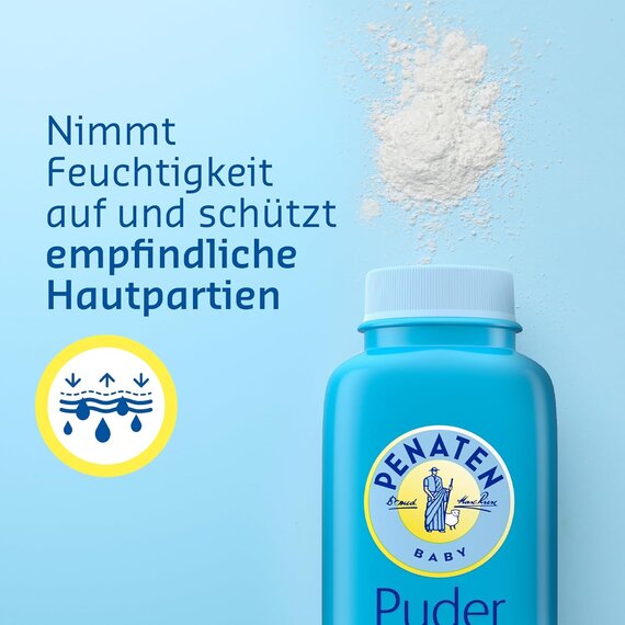 Dank seiner einzigartigen Formel nimmt unser Baby Puder Feuchtigkeit auf und hält die Haut trocken und geschützt. Dermatologisch bestätigt und zu 99% natürlich, ist unser Puder die ideale Wahl für Eltern, die auf der Suche nach einem sicheren und natürlichen Produkt sind. Im Vergleich zu Pudern, die auf Talg basieren, hat unser Baby Puder eine 2x höhere Feuchtigkeitsaufnahme, um die Haut Ihres Babys trocken zu halten. Unser Baby Puder ist einfach anzuwenden - das Puder entfernt vom Gesicht in die Hand schütten und erst dann auf der Haut verteilen.