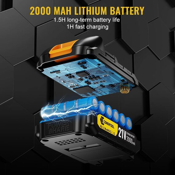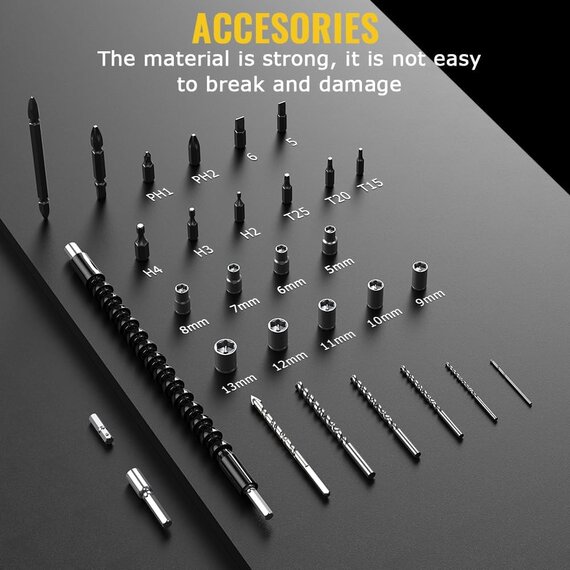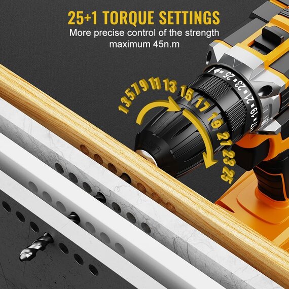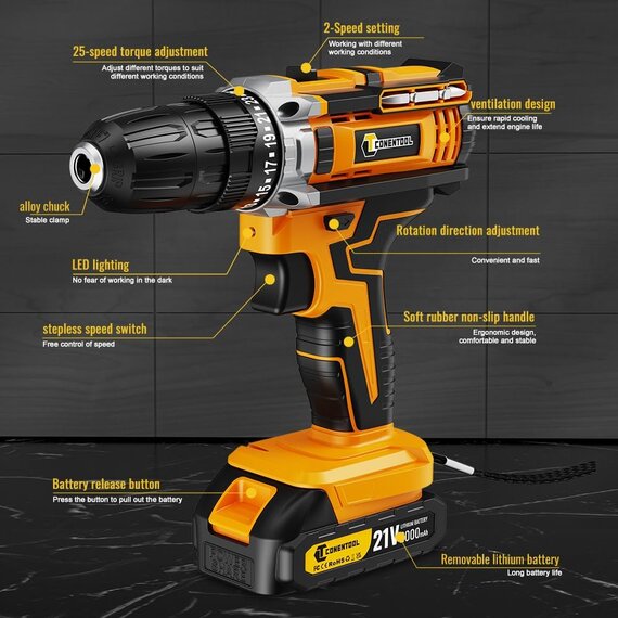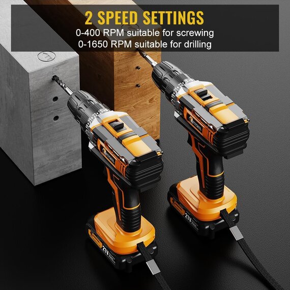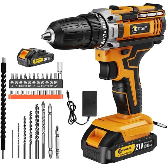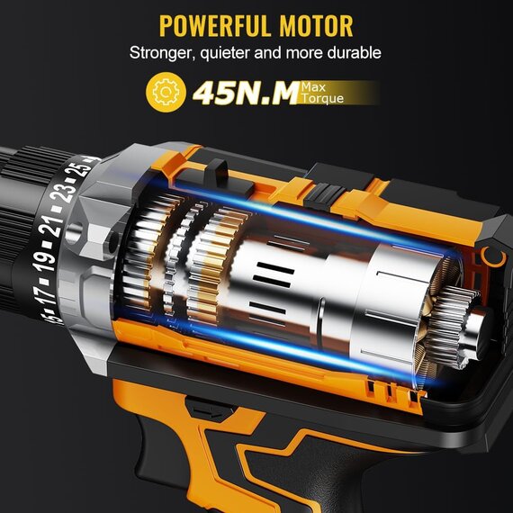21V Akkuschrauber Set, Akku bohrschrauber mit 2000mAh Akkus, 45 N.m Max Akkuschrauber, Drehmoment auf 25+1 Stufen, bohrschrauber mit 30PCS