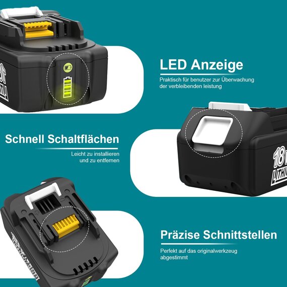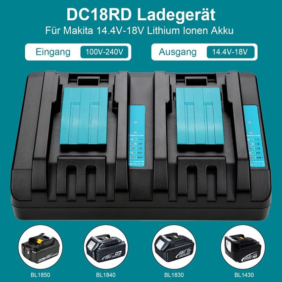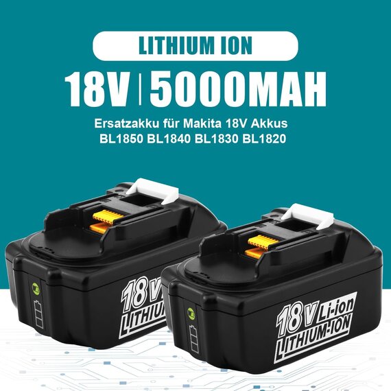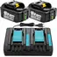 [2 Stück] Energup 18V 5000mAh Li-ion Ersatzakku + DC18RD Dual Port Ladegerät für Makita 18V Akku BL1850B BL1830 BL1840 BL1850 BL1860 BL1815 BL1820