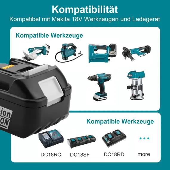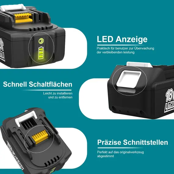 Kompatibel mit Makita Akku 14.4V-18V:BL1860 BL1850 BL1840 BL1830 BL1820 BL1815 BL1825 BL1835 LXT-400 BL1415 BL1420 BL1430 BL1440 BL1450 usw.