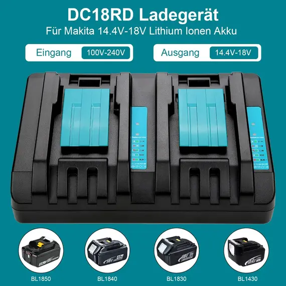Ersatzladegerät für Makita Ladegerät 18V:DC18RD DC18RC DC18SF DC18SD usw.