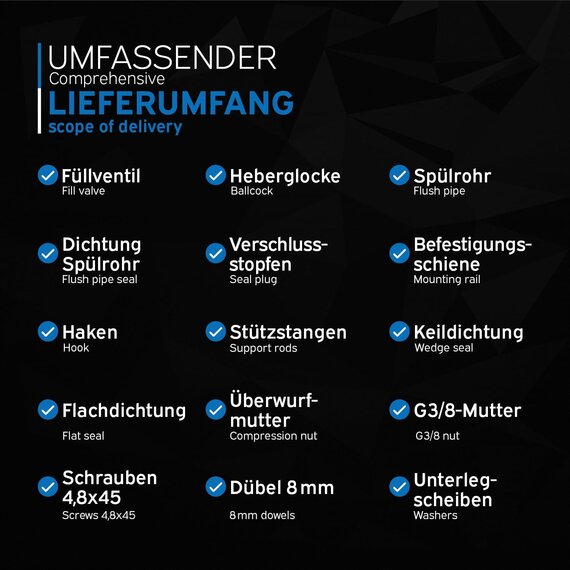 Spülkasten mit Start/Stop-Funktion, 9 Liter Füllvolumen, Weiß – Wassersparend, universell kompatibel, inkl. Füllventil & Zubehör für einfache Montage