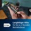 Das Aufladen und Reinigen des Geräts ist einfach und bequem: Der Trimmer ist zu 100 % wasserdicht und kann daher einfach unter der Lasche gereinigt werden. Der leistungsstarke Lithium-Ionen-Akku bietet eine Laufzeit von 120 Minuten sowie eine Schnellladeoption von 5 Minuten. Dank der Anzeige für niedrigen Akkustand, Ladestatus und vollen Akkustand wissen Sie immer, was der Akkustatus ist. USB-A-Anschluss, Netzadapter nicht im Lieferumfang enthalten