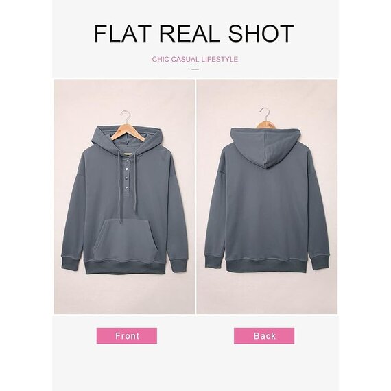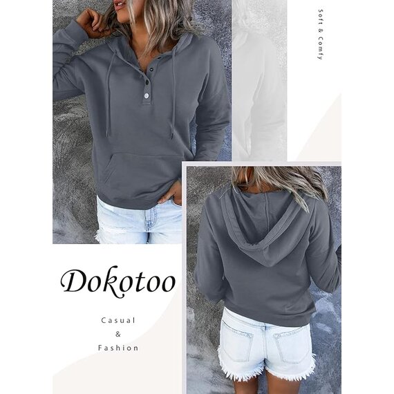 Dokotoo Kapuzenpullover Damen Knopfleiste Hoodie Pullover Langarm Herbst Winter Sweatshirt Oberteil Pulli
