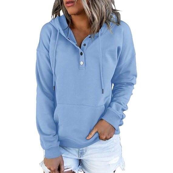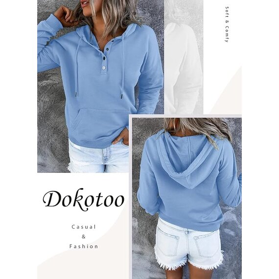 Dokotoo Kapuzenpullover Damen Knopfleiste Hoodie Pullover Langarm Herbst Winter Sweatshirt Oberteil Pulli