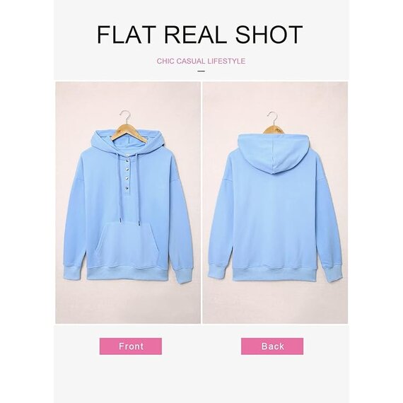 • Ein Basic Sweatshirt für Herbst und Winter, Knopfleiste vorne, einfarbiger Kapuzenpullover mit Kordelzug und Kängurutasche, überschnittene Schultern für einen lässigen Oversize Look.