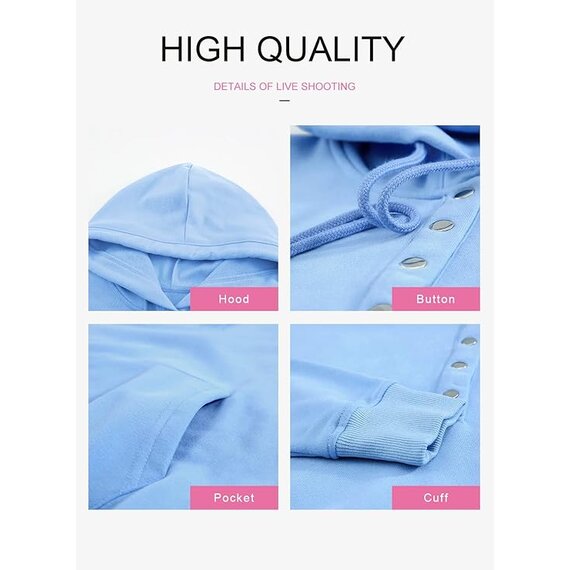 Dokotoo Kapuzenpullover Damen Knopfleiste Hoodie Pullover Langarm Herbst Winter Sweatshirt Oberteil Pulli