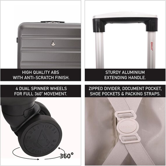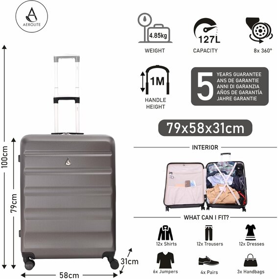Aerolite XL Große Leichter ABS Hartschale 4 Rollen Trolley Koffer Reisekoffer Hartschalenkoffer Rollkoffer Gepäck, 79cm, Kohlegrau