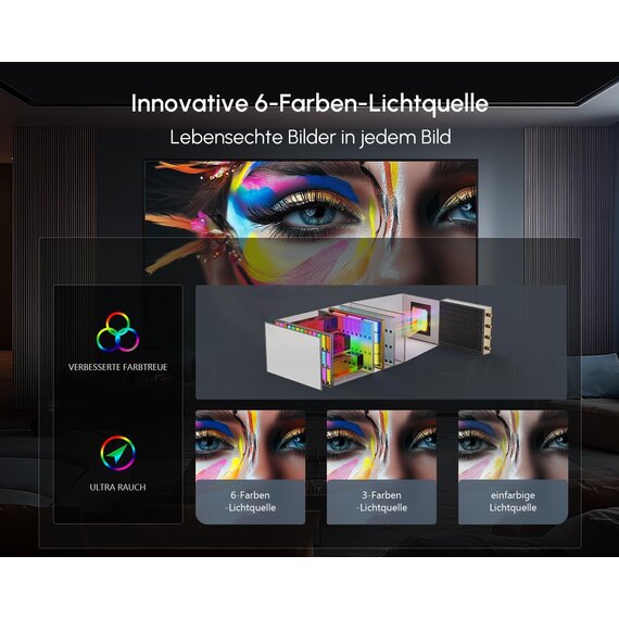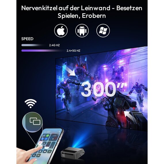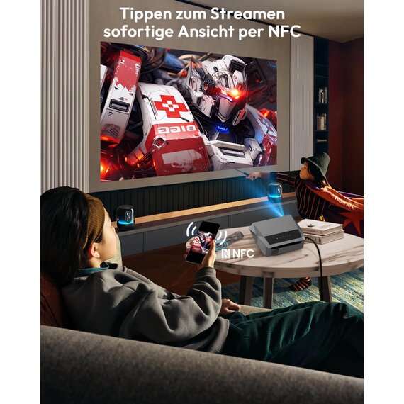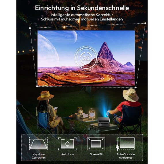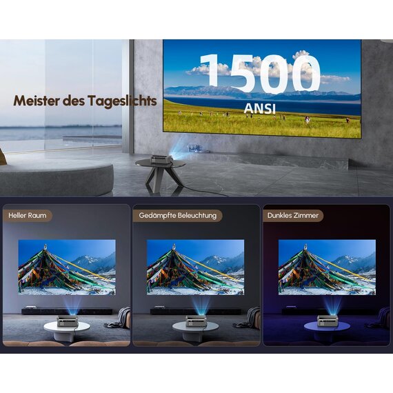 Beamer 4K Heimkino 1500 ANSI Tageslicht Beamer mit WiFi6, Bluetooth5.2, Autofokus Full HD LED Smart Projektor mit Netflix, Trapezkorrektur für Decken-/Wand-/Stativmontage, Gaming, Heimkino(Grau)