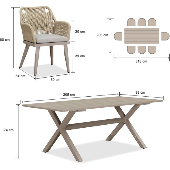 Rivera Gartenmöbel Set 9-TLG PE Rattan Gartenmöbel Sitzgruppe Set 8 Stühle mit Tisch, Terrassenmöbel Außen Garten Essgruppe für 8 Personen, Champagner