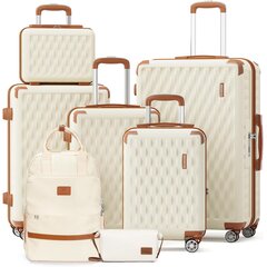 【7-teiliges Koffer Set -- Der beste Partner】 Dieses Reisekoffer-Set enthält 1 x Kosmetikkoffer (30cm), 1 x Kabinenkoffer (46cm), 1 x Handgepäck (53cm), 1 x Mittelgroßer Koffer(63cm), 1 x Großer Koffer(73cm), 1 x Reiserucksack, 1 x Kulturbeutel. Kann zur einfachen Aufbewahrung ineinander verschachtelt werden. Eine einzigartige Übereinstimmung kann Ihre verschiedenen Bedürfnisse erfüllen, machen Sie Ihr Leben einfacher und bequemer 【Höhere Qualität --- ABS Hartschalenkoffer Set】 Melalenia Kofferset besteht aus hochfestem ABS Material, Kunststoff Er zeichnet sich durch hohe Stabilität und Schlagfestigkeit aus und ist durch seine Oberflächenhärte besonders kratzfest. Dazu kommen die 4 Kunststoff-Füße für einen sicheren Stand und die speziell geformten Eckenschützer, welche Einwirkungen und Stöße optimal ableiten 【Praktisch & Bequem -- 4-Zwillingrollen Reisekoffer】Die um 360° drehbaren zweireihigen Rollen sind besonders leise, leicht zu manövrieren und gut ausbalanciert. Der Kabinenkoffer S-46cm hat abnehmbare Rollen und entspricht den meisten Handgepäckbestimmungen der Fluggesellschaften. Die oberen und seitlichen Griffe sind aus weichem Material gefertigt, um die Finger beim Tragen des Gepäcks besser zu schützen 【YKK-Reißverschlüsse --- 3-stufiges Teleskopgriff】 YKK-Reißverschlüsse haben einen stärkeren Biss als gewöhnliche Reißverschlüsse und können gewebte Reißverschlüsse wirksam vor dem Reißen schützen. Der 3-stufiges Teleskopgriff ermöglicht es Ihnen, die Höhe des Griffs entsprechend Ihrer Körpergröße anzupassen, Höhen und Tiefen für ein komfortableres Tragen zu glätten 【Sicher Reisen --- Trolley Koffer Set mit TSA-Schloss】 Mit integriertem Kombinationsschloss ist es einfach und bequem, Ihren Koffer während der Reise zu sperren und zu entsperren. Schloss kann von den Sicherheitsbeamten mit einem Generalschlüssel geöffnet und unbeschadet verschlossen werden. Mit der dreiteiligen Teleskopdeichsel können Sie sich auch in engen Räumen leicht bewegen