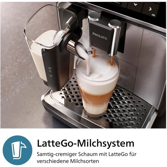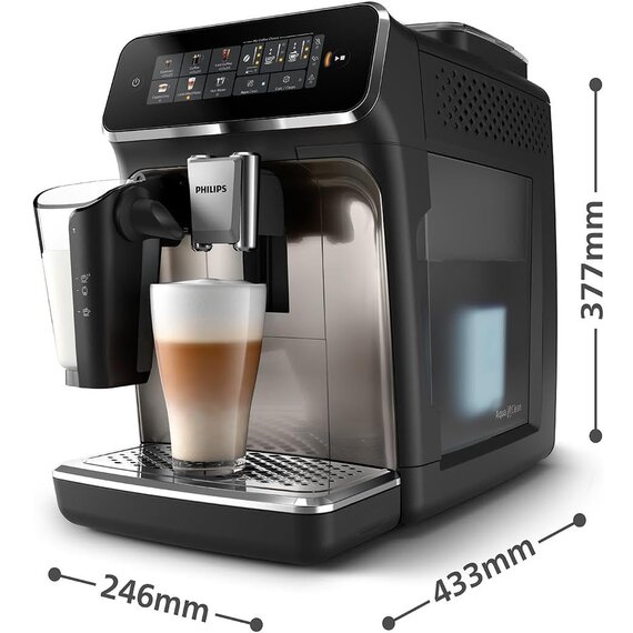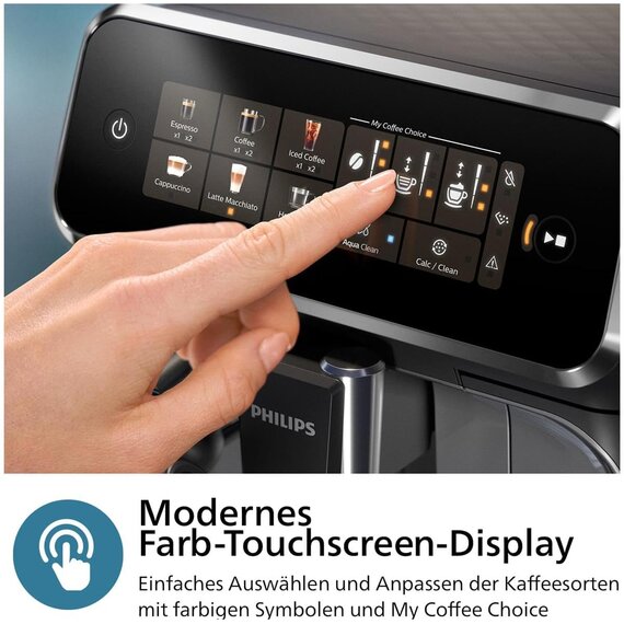 Philips 3300 Series Kaffevollautomat - 6 Getränke, Modernes Farb-Touchscreen-Display, LatteGo-Milchsystem, SilentBrew, 100% Keramikmahlwerk, AquaClean Filter