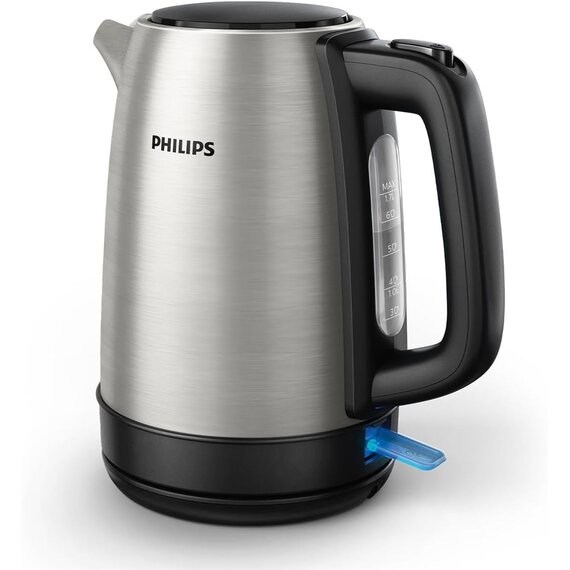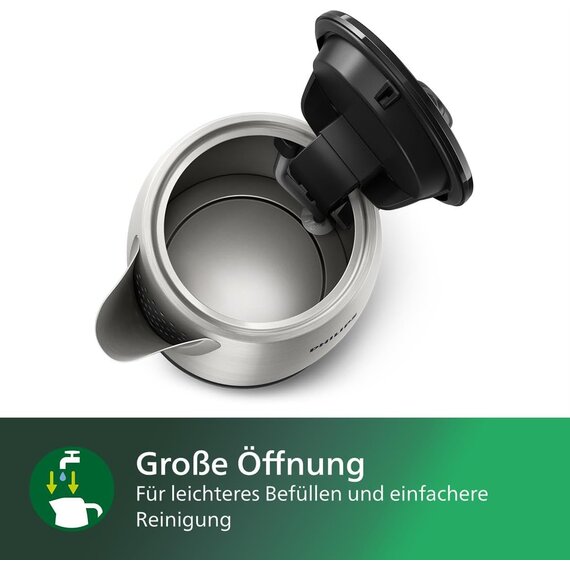 Philips Daily Collection Metall Wasserkocher – 1,7L, Leuchtanzeige, 360°-Basis, Mikro-Sieb-Filter, Flaches Heizelement, Sprungdeckel, Energiesparend, Sicheres Design, Schnelles Aufkochen