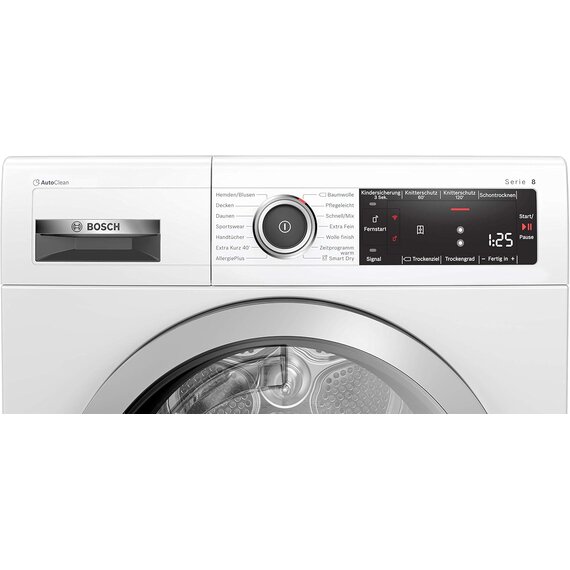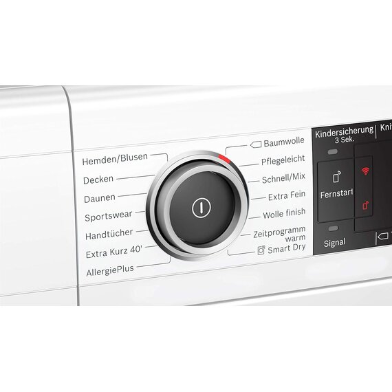 Rekordverdächtig schnell: Trocknet 1 kg Wäsche in weniger als 20 Minuten Energieeffizienzklasse: A+++ I 176 kWh/Jahr Maximale Beladungsmenge: 8,0 kg Türanschlag: Rechts Anschlusswert: 600 W