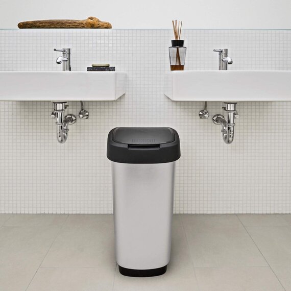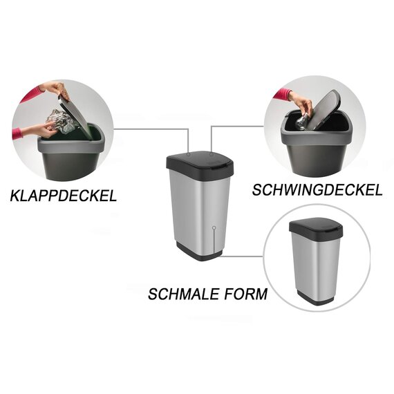 • KOMFORT: Kunststoff Abfalleimer mit Schwing- und Klappdeckel - Geräuschloses Schließen des Deckels - Platzsparender Abfallbehälter