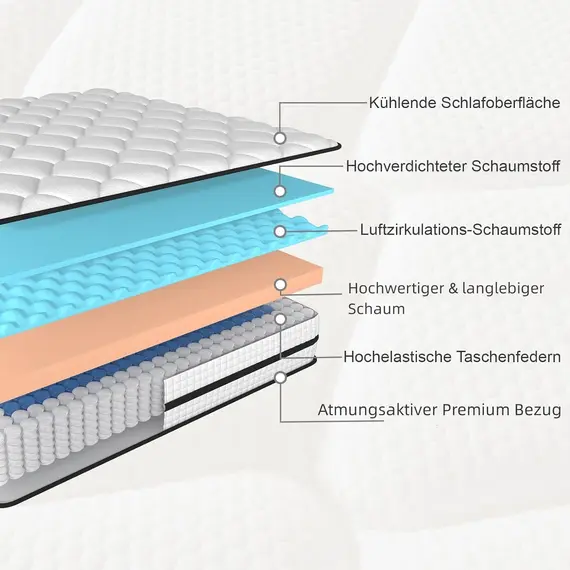 Twirest Matratze 140x200cm,Taschenfederkernmatratze (Höhe 20 cm),7-Zonen Orthopädische Matratze mit Komfortschaum, Gewebe mit weicher Oberfläche,Matratze für Erwachsene,Mittlerer Härtegrad (H3)
