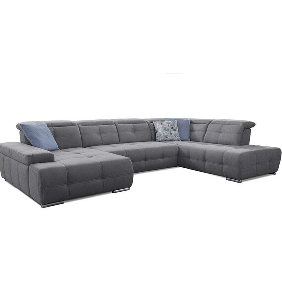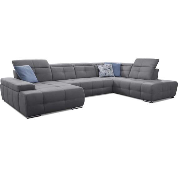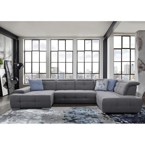 Cavadore Wohnlandschaft Mistrel mit Schlaffunktion / U-Form Bettsofa mit leichter Fleckentfernung dank Soft Clean / Geeignet für Haushalte mit Kindern, Haustieren /343 x 77 x 228 / grau