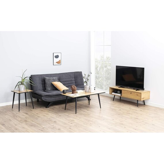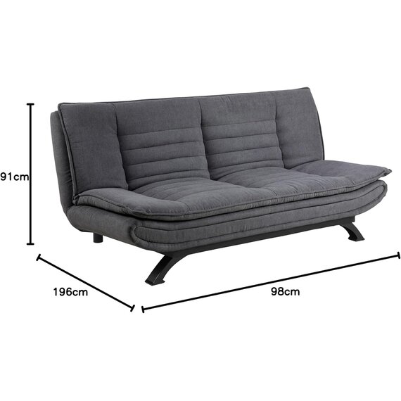 AC Design Furniture Jasper Bettcouch Dunkelgrau/Schwarz, Schlafsofa mit 3 Liegepositionen, Moderner 3-Sitzer Ohne Armlehne, Gepolstert mit Schwarzen Metallbeinen, L: 196 x H: 91 x T: 98 cm
