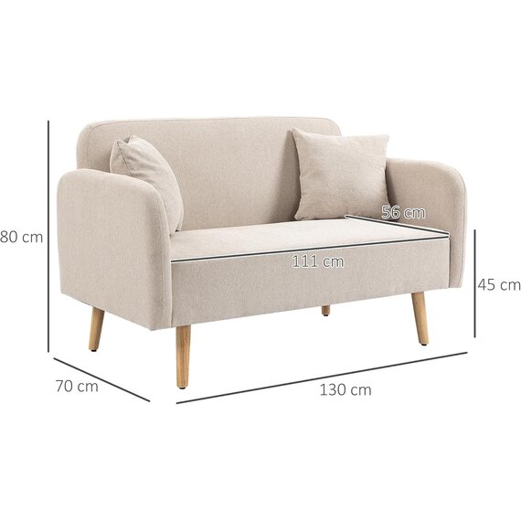 HOMCOM 2 Sitzer Sofa, Couch mit 2 Wurfkissen, gepolsterter Doppelsofa, Polstersofa mit Samtopik, Armlehne, Loveseat für Wohnzimmer, Schlafzimmer, 130 x 70 x 80 cm, Creme