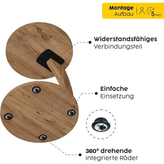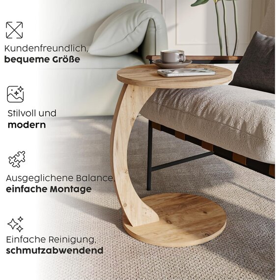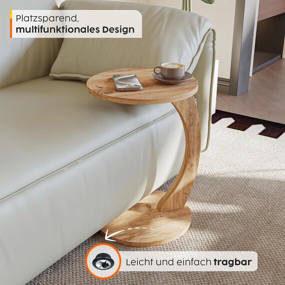 Kleiner Beistelltisch C Form, stylischer Sofatisch in schöner Nussbaum Holz Optik, runder Tisch als Ablagefläche für Couch und Sofa, Beistelltisch Couch