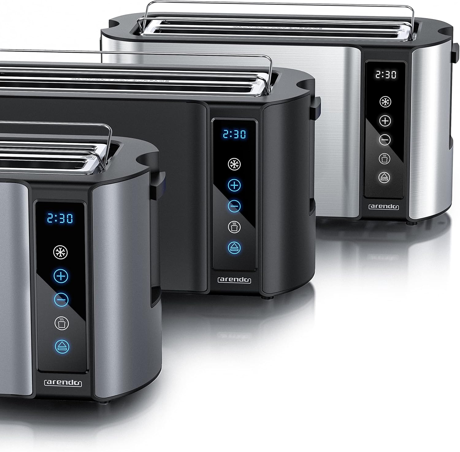 Arendo - Edelstahl Toaster Langschlitz 4 Scheiben- Touchscreen – Doppelwandgehäuse – 1500 W – Integrierter Brötchenaufsatz – 7 Bräunungsgrade – Brotzentrierung – Restzeitanzeige – Memoryfunktion