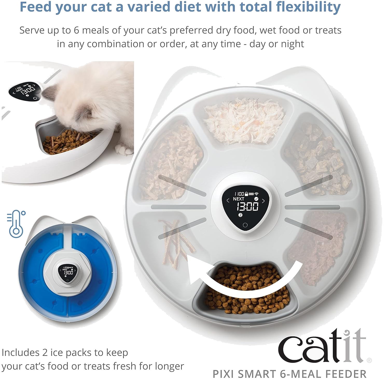 Catit - PIXI Smart Futterautomat mit 6 Mahlzeiten (Nassfutter), Weiß