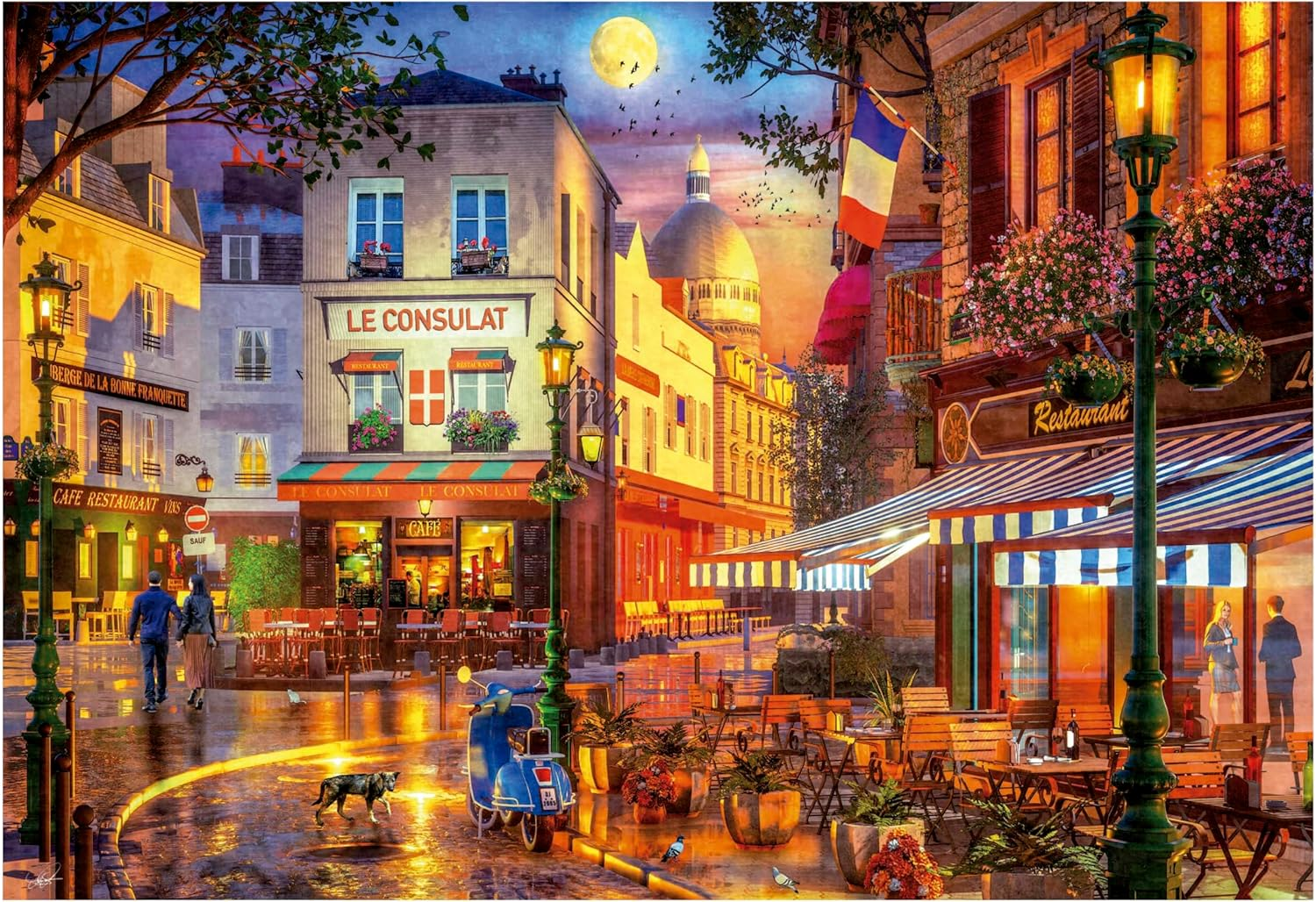 - Bonjour Paris! Das 5.000-Teile-Puzzle "Le Consulat" zeigt das legendäre Pariser Café "Le Consulat" in Montmartre – mit typisch französischer Fassade, Laternen, Terrasse und dem Charme vergangener Jahrzehnte. Paris-Nostalgie zum Puzzeln!
