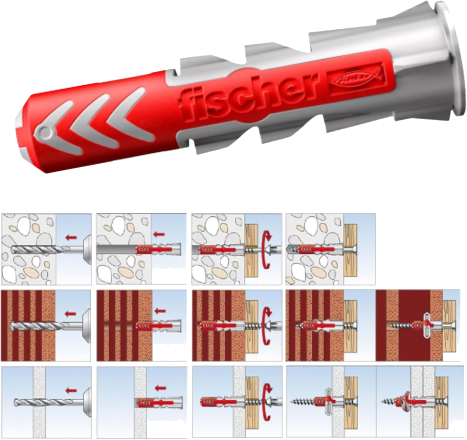 Entdecken Sie unser umfangreiches 162-teiliges Sortiment, das für jede Befestigungsaufgabe die perfekte Lösung bietet. Im Mittelpunkt steht unser innovativer Universaldübel, der dank seiner zwei Materialkomponenten für optimalen Halt in verschiedensten Untergründen sorgt.