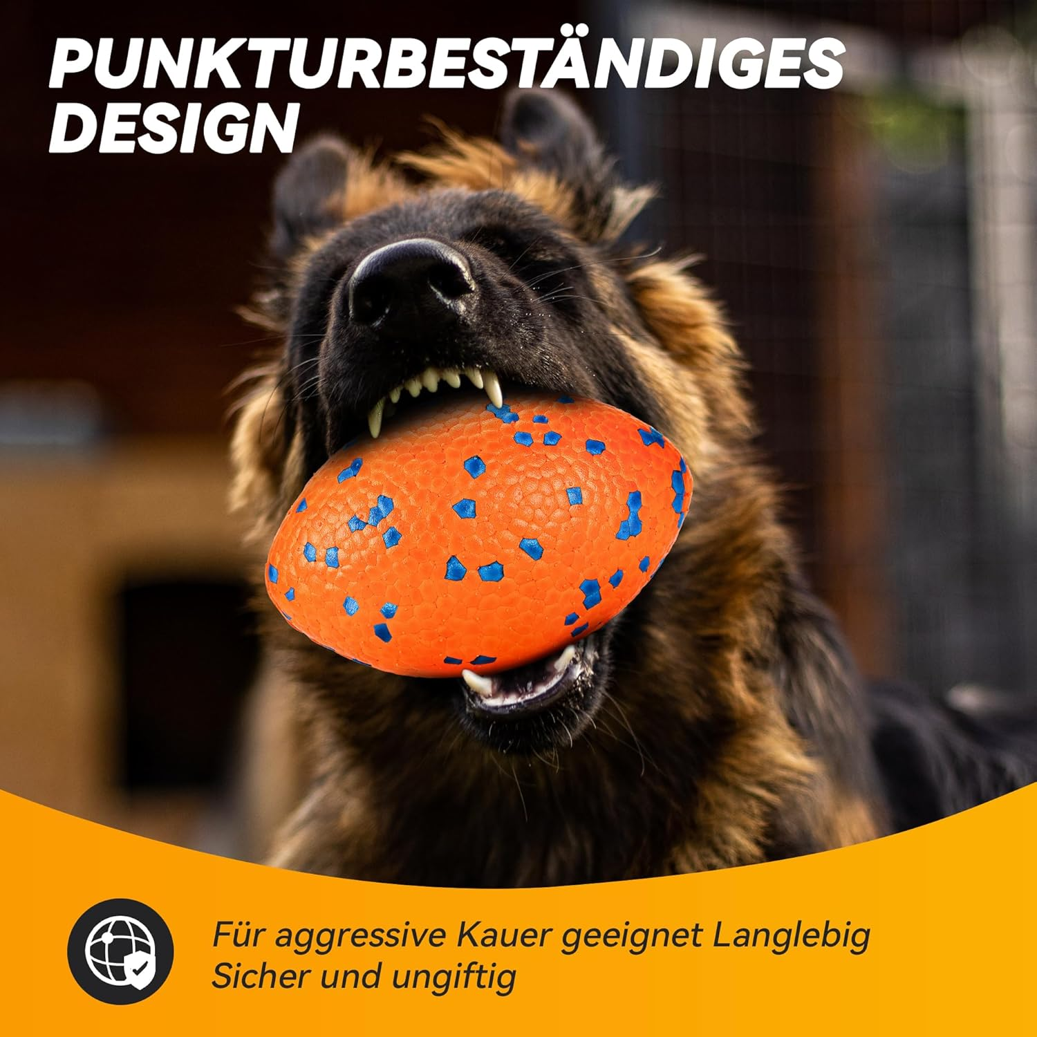- Ikonische Fußballform: Die auffällige Farbgestaltung in Orange und Blau sorgt für eine stärkere visuelle Stimulation, hält Ihren Hund aktiv und beugt Langeweile vor. Ideal für Fangspiele und Apportiertraining – ohne dass Ihr Vierbeiner das Zuhause verwüstet.