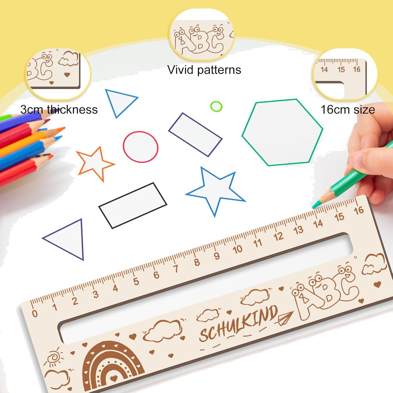 - Hochwertige Materialien: Dieses Lesehilfe und Lineal für Schulkind ist aus natürlichem Holz, ist es umweltfreundlich und gesund und setzt keine schädlichen Chemikalien frei. Das Lineal ist 16 cm lang, 5 cm breit und 3 mm dick – robust, langlebig und perfekt für die tägliche Nutzung in Schule und Zuhause