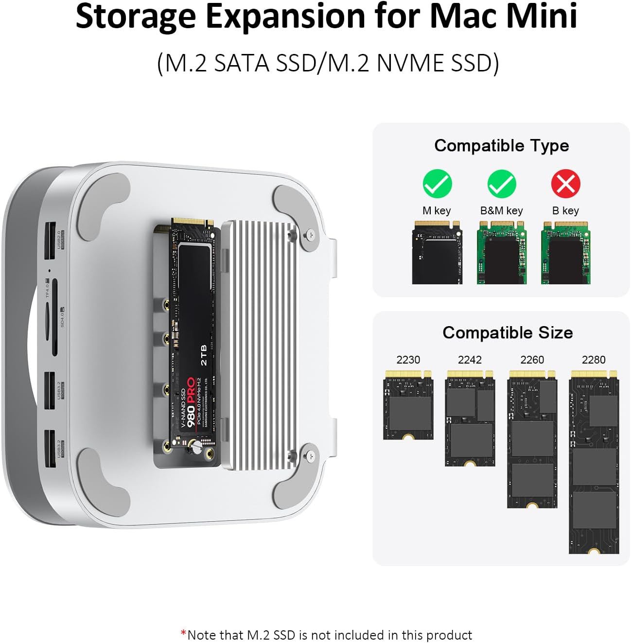 - Interne Speichererweiterung: Die Mac Mini-Dockingstation unterstützt M.2-SSD (nur für NVMe PCIe), um die Fähigkeiten Ihres Mac Mini M4 mit einem revolutionären USB-C-Hub zu maximieren, bis zu 10 Gbit/s Geschwindigkeit und 8 TB Kapazität. Passend für 2230, 2242, 2260 und 2280 SSD. Bitte beachten Sie: SSD ist nicht im Lieferumfang enthalten.