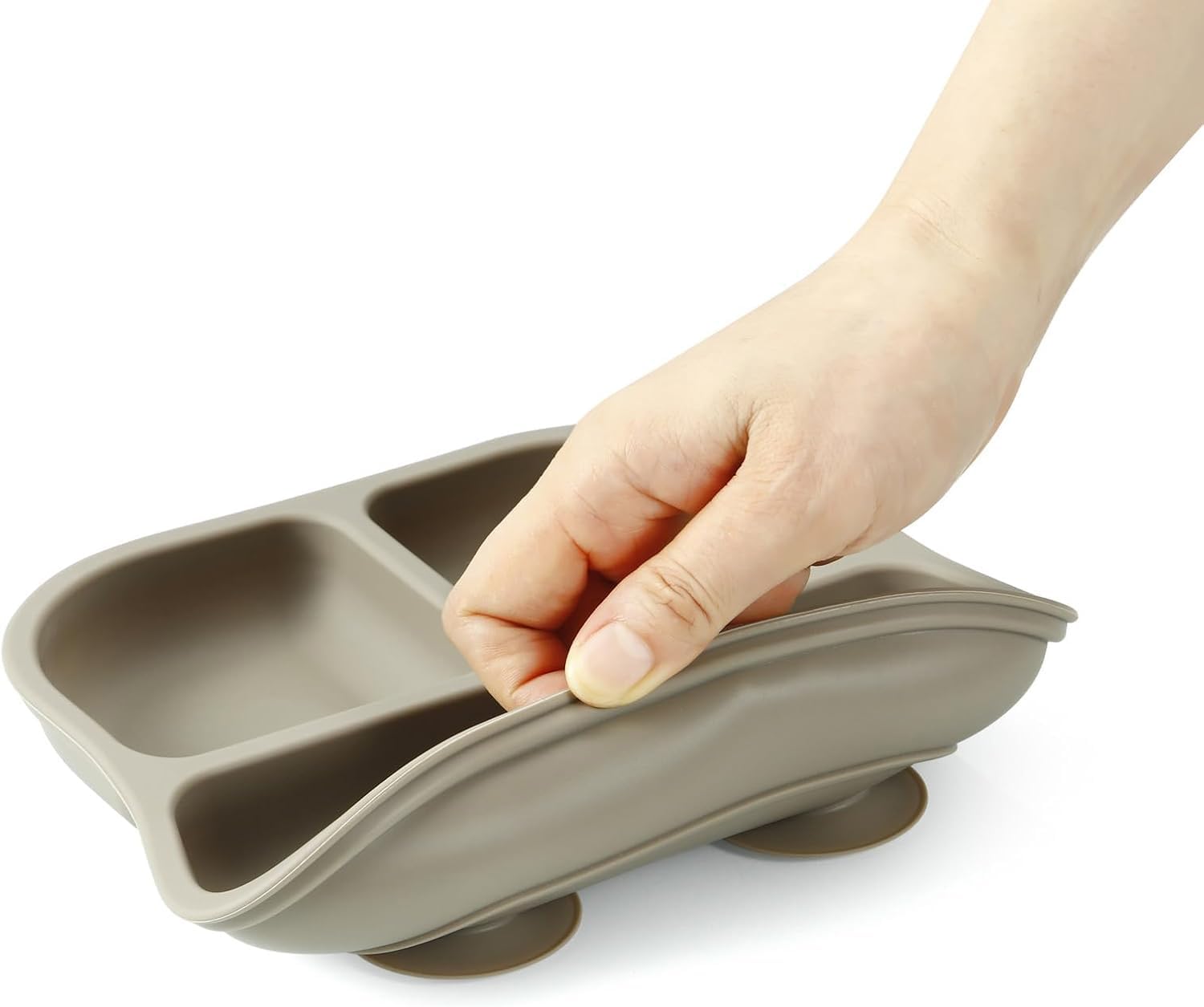 Frühstück, Mittagessen und Abendessen können schwierig sein, wenn Sie ein wählerisches Kind haben. Unsere geteilten Silikonteller für Kinder verfügen über 3 separate Fächer auf jedem silikon kinderteller, damit Lebensmittel voneinander getrennt werden können. Ideal für Snacks, warme und kalte Mahlzeiten. Legen Sie Obst in einen Abschnitt, Kekse in einen anderen und Gemüsestäbchen in einen weiteren. Die Möglichkeiten sind endlos, und es macht den Kleinen Spaß, sich selbst zu füttern.