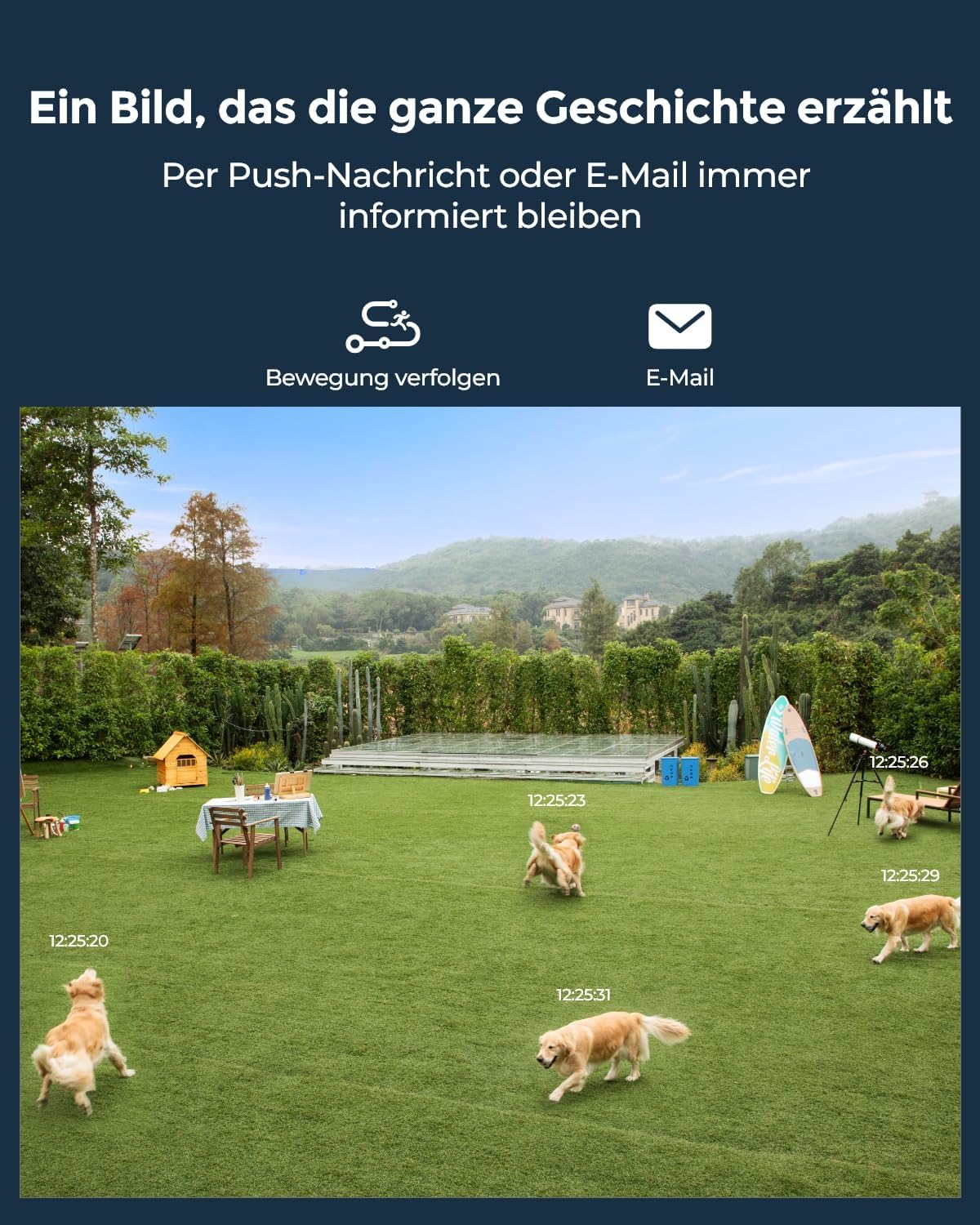 - KI-ERKENNUNG & BEWEGUNGSVERFOLGUNG: Duo 3V PoE ermöglicht Echtzeitwarnungen für erkannte Personen, Fahrzeuge und Tiere sowie anpassbare Erkennungszonen und Alarmzeitpläne. Ausgestattet mit der bahnbrechenden Bewegungsverfolgung-Technologie (Ohne PT-Funktion), spart diese Kamera Ihnen viel Zeit ein, indem sie ein Bild mit einer Zusammenfassung aller Bewegungen von Zielen innerhalb von 15 Sekunden an Ihre Reolink App oder E-Mail sendet. Sie brauchen keine Videos mehr herunterzuladen, um die Ereignisse zu überprüfen.