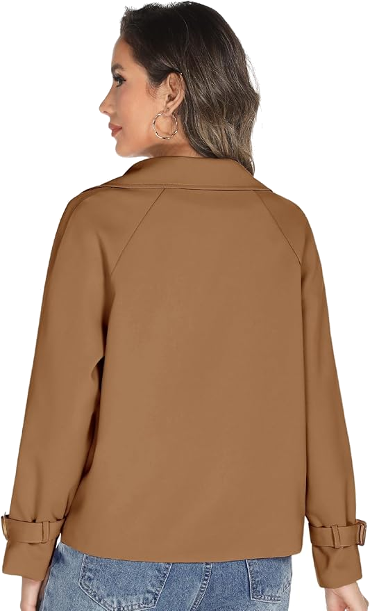 Tuopuda Kurzer Trenchcoat Damen Zweireiher Kurzmantel Übergang Trench Coat Klassische Herbst Frühling Sommermantel Leichte Damenmantel Mantel Übergangsmantel Reverskragen