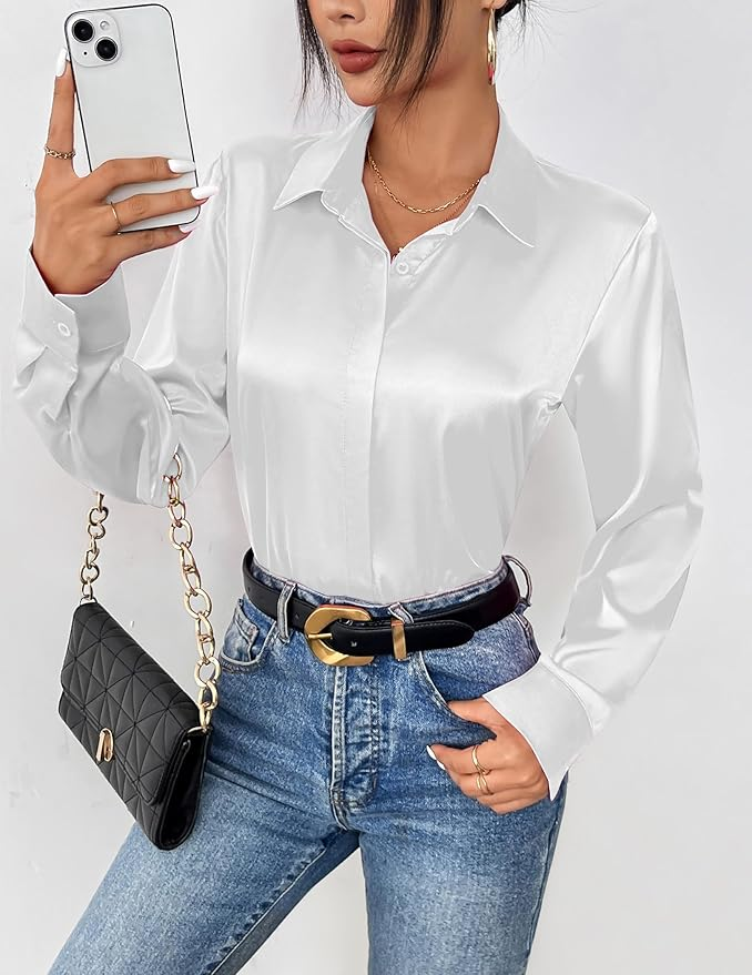 ZEAGOO Satin Bluse Damen Seidenbluse V-Ausschnitt Langarm Blusen Elegant Business Oberteile Seide Hemd mit Knöpfen