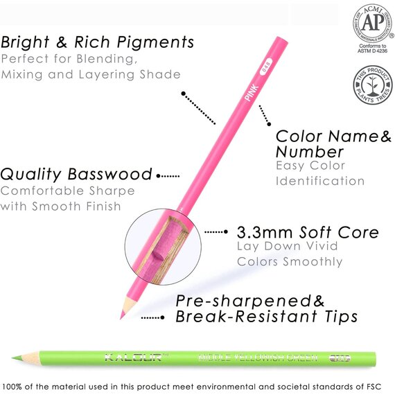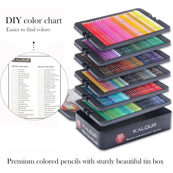 KALOUR 180 Buntstift-Set für Erwachsene, Künstler - kräftige Pigment-Weichmine - auf Wachs basierend - Ideal zum Ausmalen, Zeichnen, Skizzieren, Schattieren und Mischen - Lebendige Farben