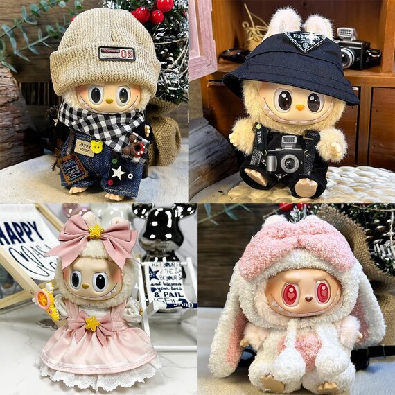 Labubu Kleidung für Puppe,17 cm große Puppenkleidung für labubu Kleidung,Labubu-Zubehör für Puppe,Passende Kleidung für die Labubu-Plüsch Toy(ohne Puppe) (D)
