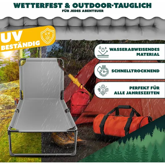 EINFACHER AUFBAU: Das Feldbett ist leicht & klappbar, benötigt keine Montage und lässt sich innerhalb von 10 Sekunden aufstellen. Ideales Klappbett für den Indoor & Outdoor Bereich wie Wandern, Festival oder als Gäste-Bett. Die Sonnenliege ist faltbar und spart Ihnen Zeit und Mühe, sodass Sie sich mehr auf Ihre Abenteuer konzentrieren können.